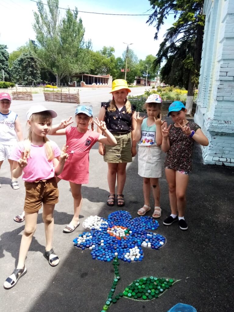 Педагог-организатор Сушков Михаил Иванович организовал интересное мероприятие по выкладыванию цветка из цветных крышек на асфальте. Посмотрите, какая красота у мальчишек и девчонок получилась.