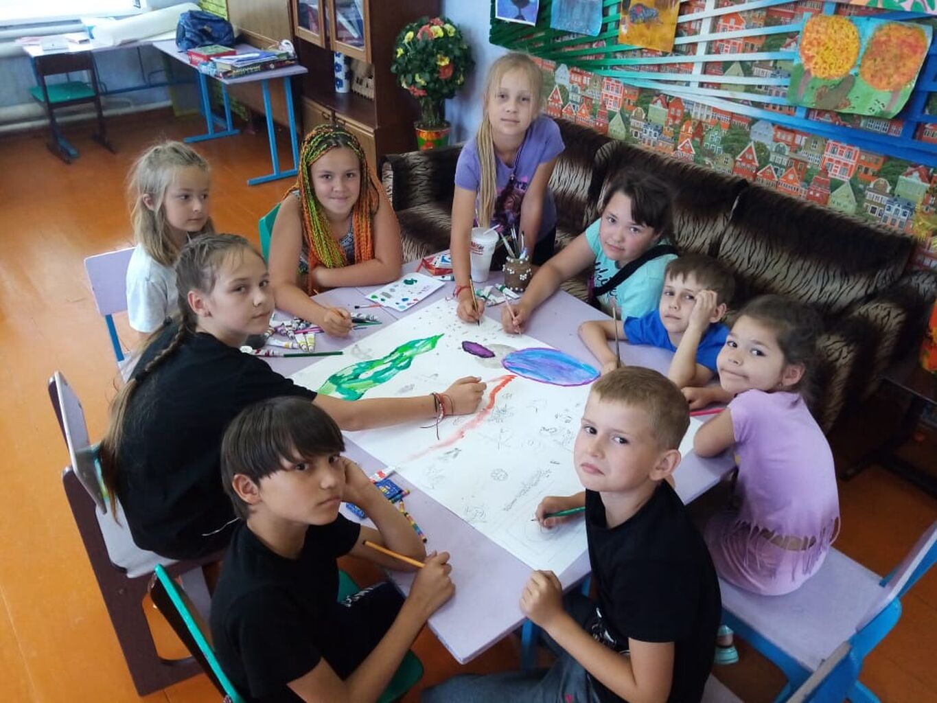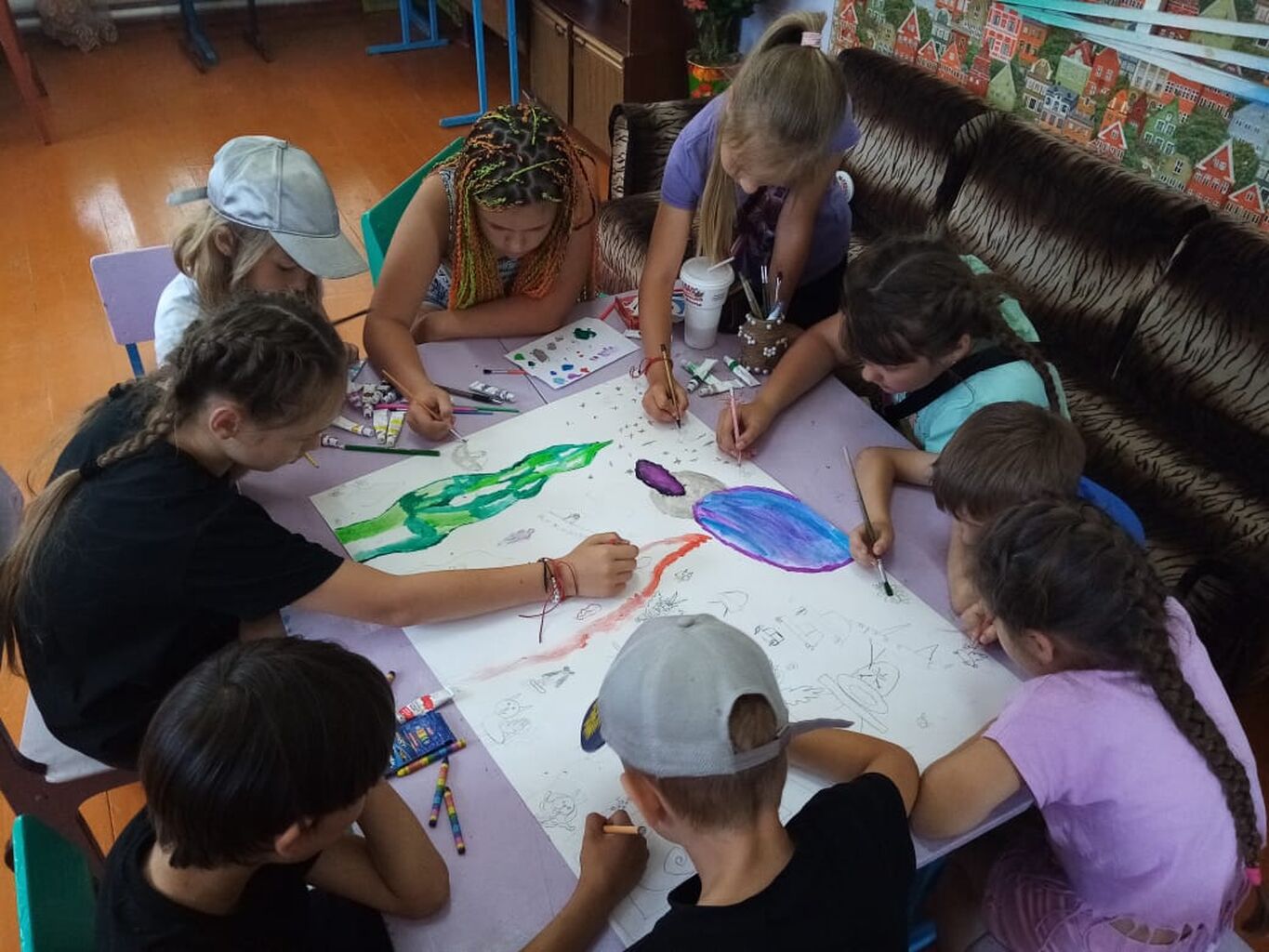 В лагере «Жемчужина» 17 июня прошел конкурс рисунка на ватмане между отрядами «Лучики» и «Непоседы».