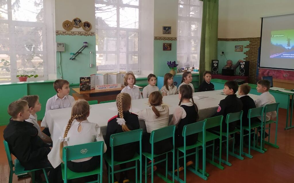 2 февраля 2023 года — день воинской славы России. 80 лет назад советские войска разгромили войска немецко-фашистских захватчиков в Сталинградской битве. В МБОУ ДО ДДТ МО Ейский район, для учащихся МБОУ СОШ № 6 имени А.П. Сороки ст-цы Камышеватской прошёл Час памяти «Дети – герои Сталинградской битвы». На фоне презентации педагог-организатор рассказал об историческом месте — Мамаевом кургане и его роли в победе Великой Отечественной войне, о детях – героях, участниках Сталинградской битвы, защитниках города Волгограда и об истории основания памятника - ансамбля «Героям Сталинградской битвы.