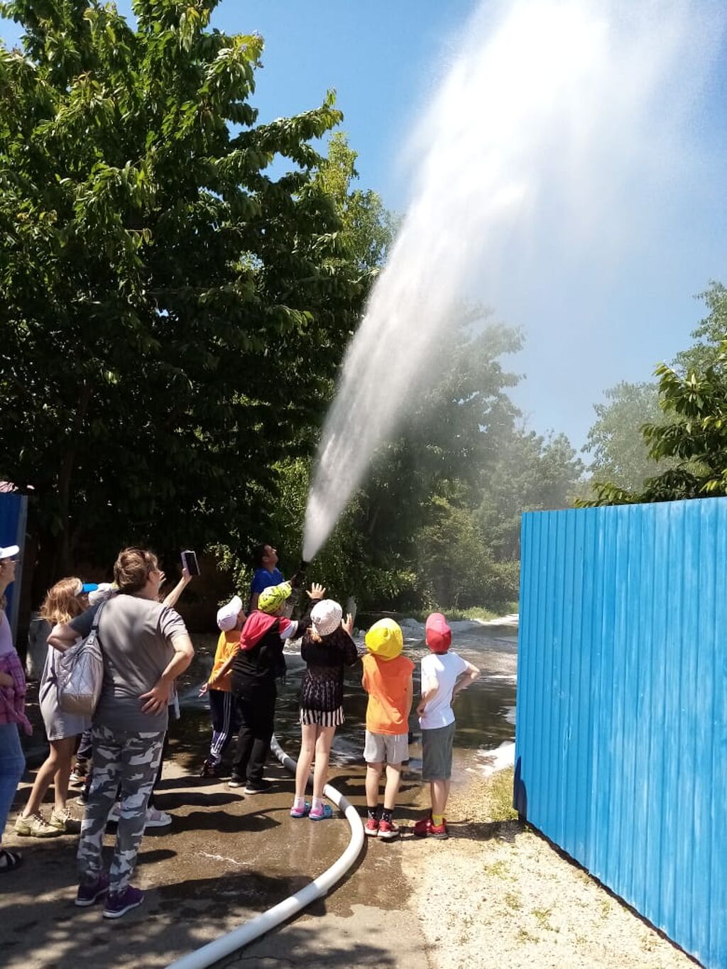 У нас сегодня в лагере насыщенный день. Мы с утра посещали пожарную часть N 7 ст. Камышеватской. Ребята узнали для чего нужен пожарнику спецкостюм, с помощью чего пожарные дышат в задымленных участках во время пожара. Ребята получили огромный заряд положительных эмоций от наглядно продемонстрированного тушения пеной, пусть и "несуществующего" пожара. Эта встреча стала для детей запоминающейся, вызвала интерес и уважение к профессии пожарного.